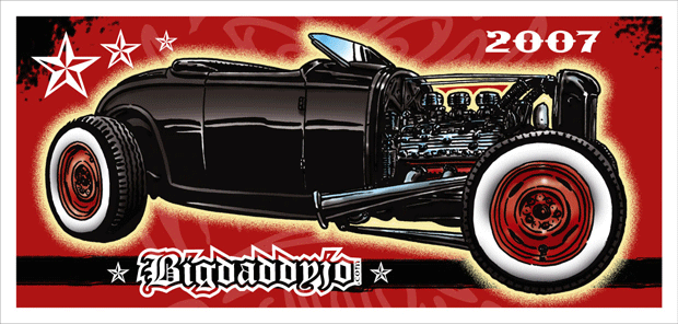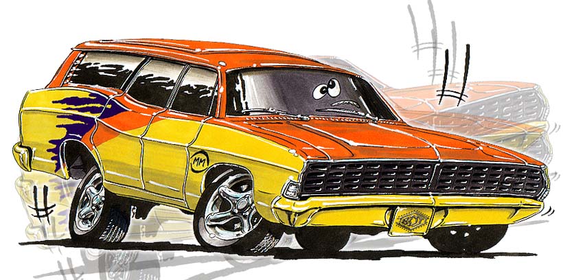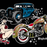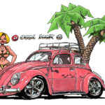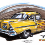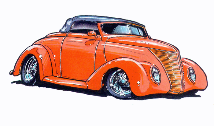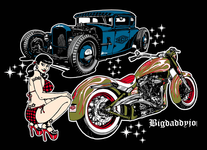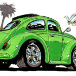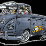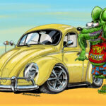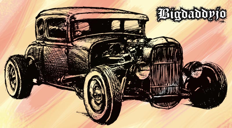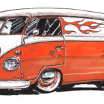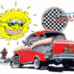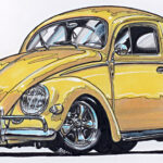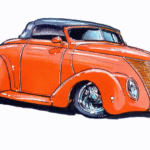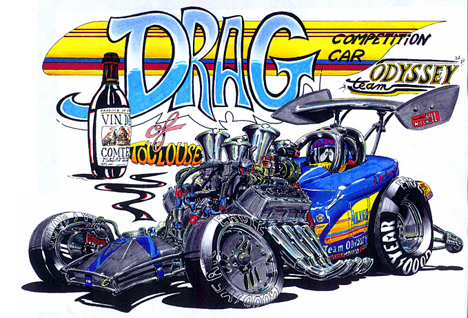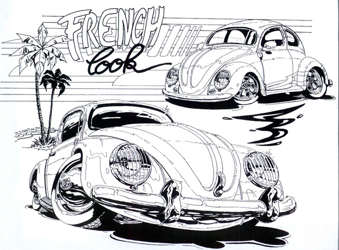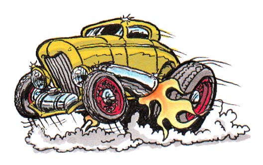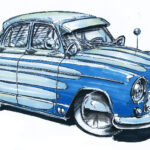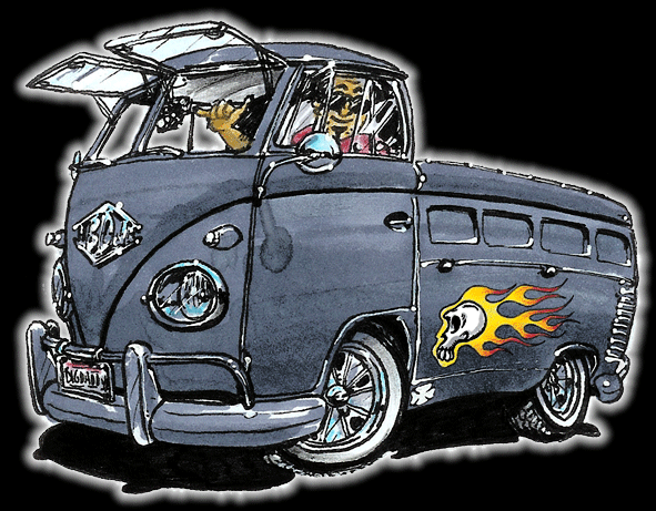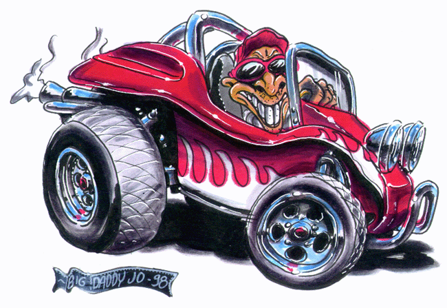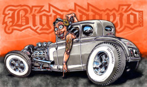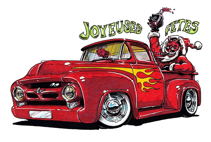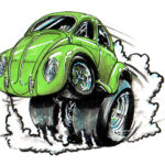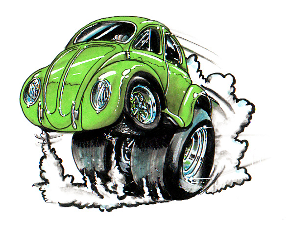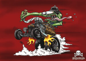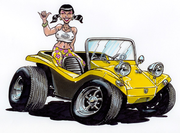Illustrations inspirĂ©es des vĂ©hicules hors du commun : hot-rods, leadsleds, cox, buggy…