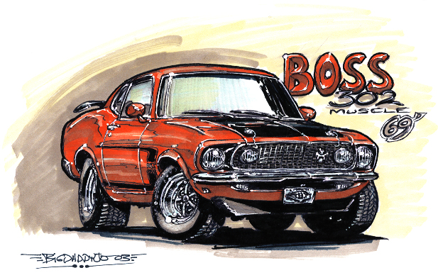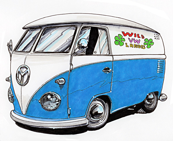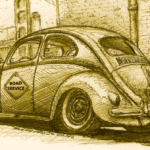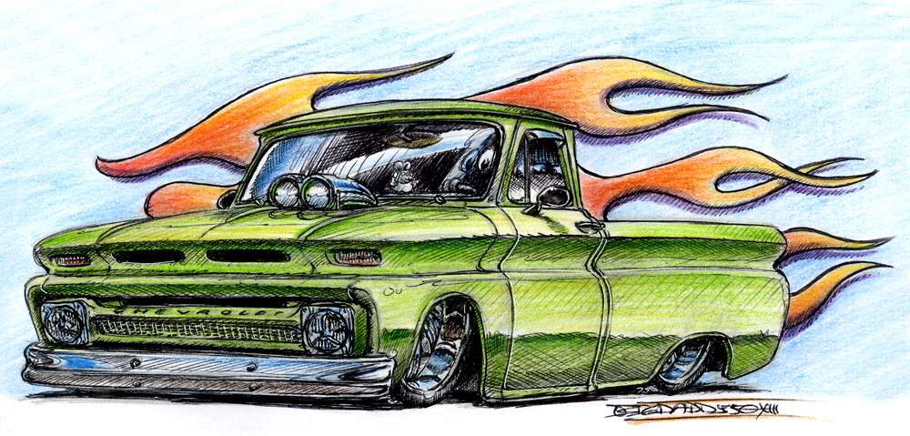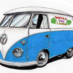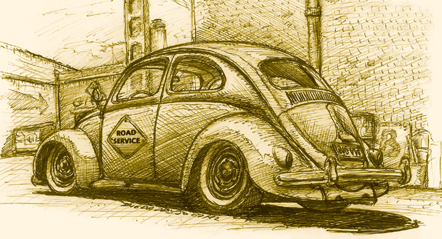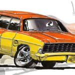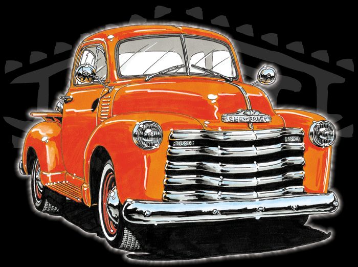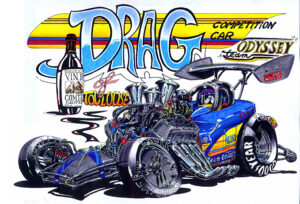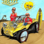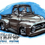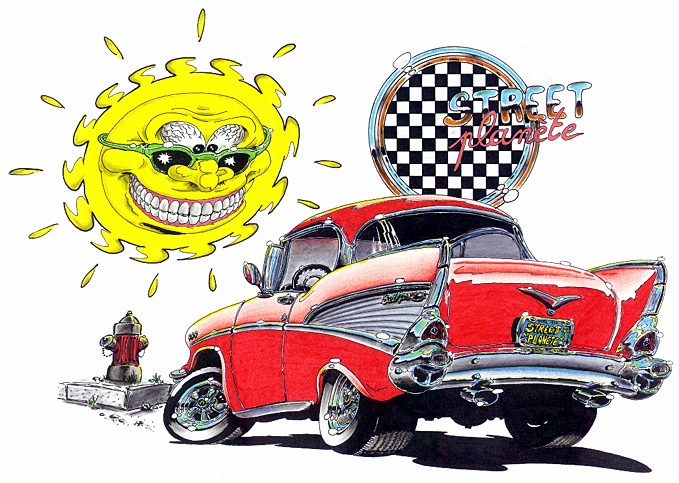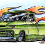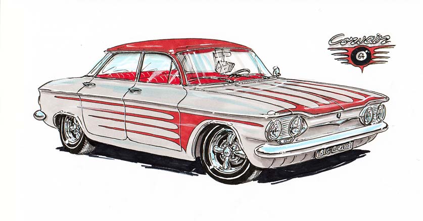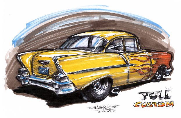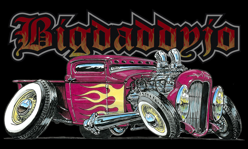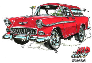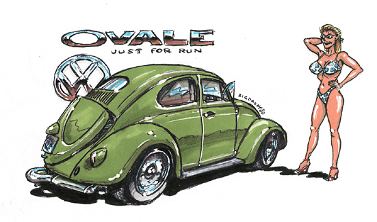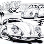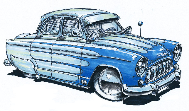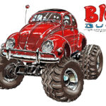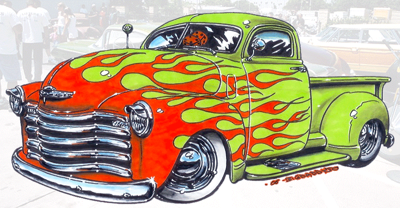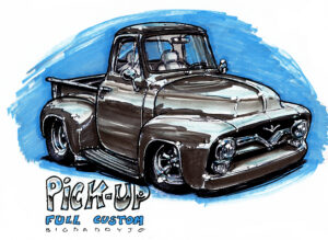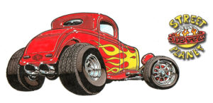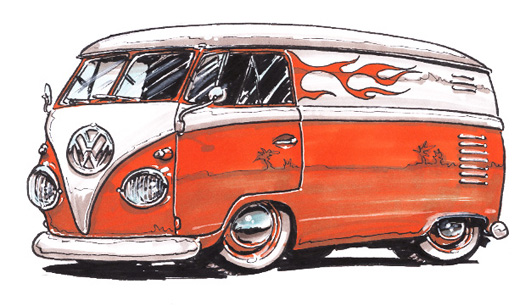 Illustrations inspirĂ©es des vĂ©hicules hors du commun : hot-rods, leadsleds, cox, buggy…